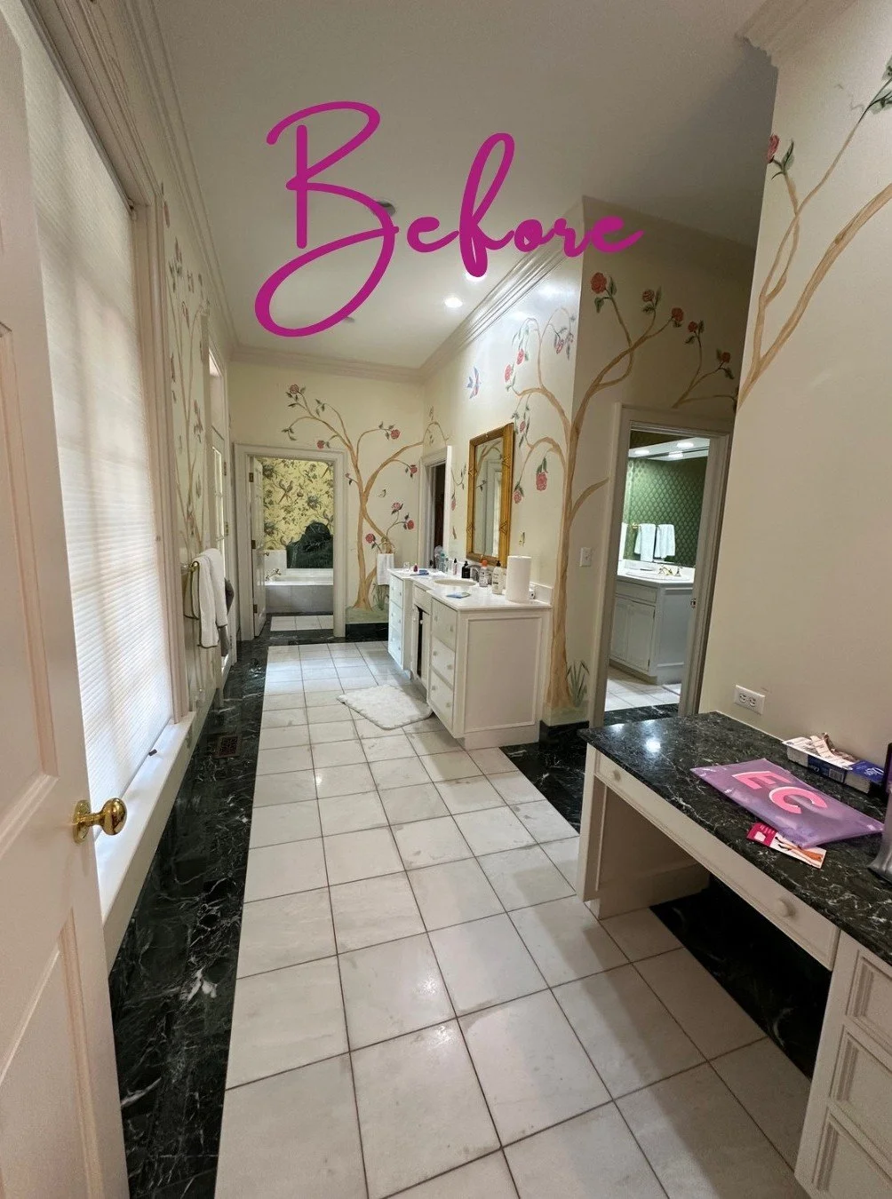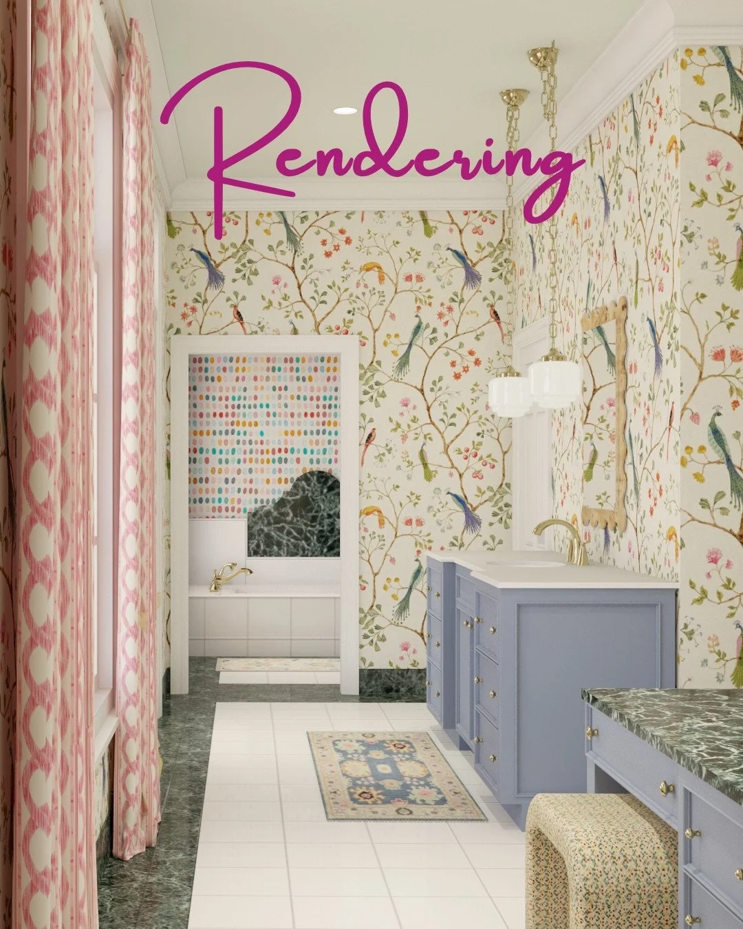 The design of the primary bathroom was envisioned to infuse the space with color and a sense of whimsy, while thoughtfully incorporating sustainable materials. As a member of the Sustainable Furnishings Council, I am committed to specifying products that minimize environmental impacts and support healthier homes in every project. Each element in the space was carefully selected with intention and purpose.